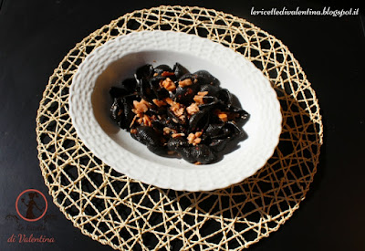 Un primo a contrasto di colori e di sapori, per una cena elegante, per togliersi la voglia di pesce o per spaventare la sera di Halloween!
