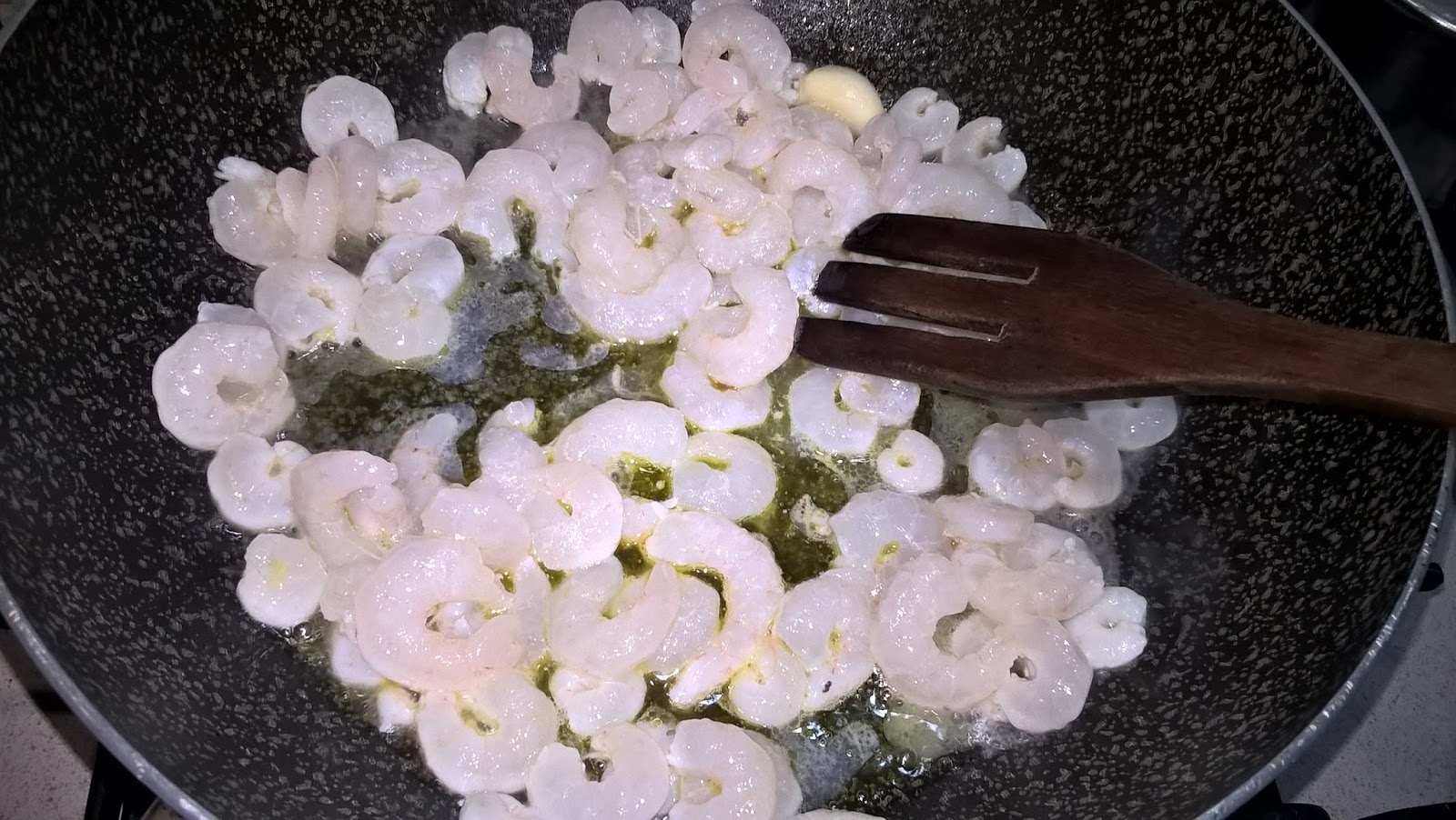 Mentre la pasta cuoce (va bene qualunque formato voi preferiate), faccio rosolare i gamberi sgusciati in olio extravergine d’oliva con uno spicchio d’aglio. Aggiungo quindi i ceci, del prezzemolo tritato e del peperoncino fresco a pezzetti. Regolo di sale e faccio saltare la pasta con il composto. Finito!