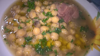 In prima battuta li mangio semplicemente così completando con un filo di olio extravergine d’oliva e del prezzemolo tritato. In foto si vede che nel piatto c’è anche un pezzetto di gambuccio di prosciutto crudo che conferisce ai ceci un sapore particolare. I ceci che avanzano, li scolo dall’acqua di cottura: mi serviranno per il condimento della pasta.