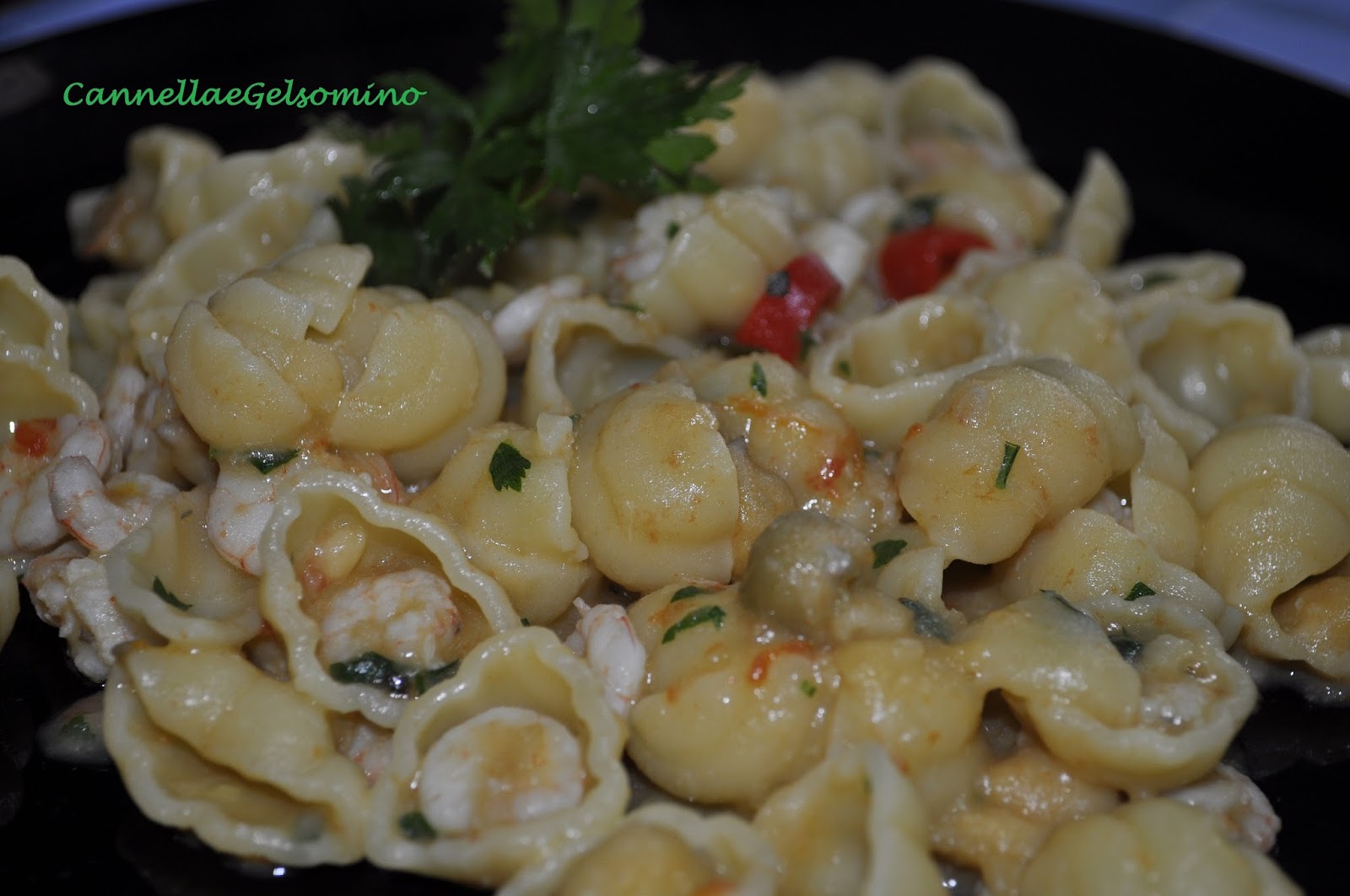 Per 4 persone: 350 g di pasta, 200 g di gamberi sgusciati, 200 g di ceci lessati, olio extravergine d’oliva, prezzemolo, peperoncino.