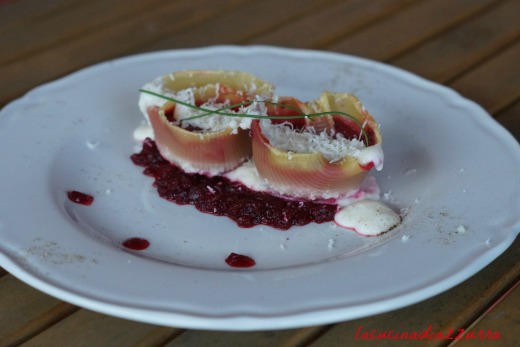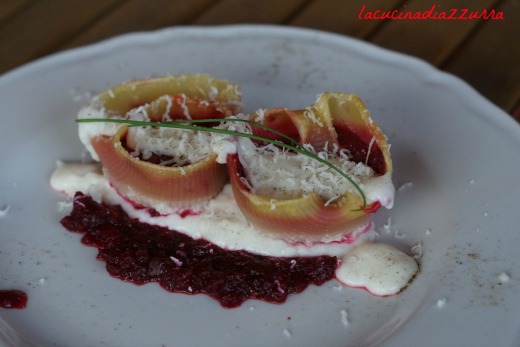 Volevo provare le barbabietole al vapore di Bonduelle, così ho pensato ad una mousse come ripieno per i miei conchiglioni di semola, volevo una crema più grintosa, anzichè usare la ricotta ho preferito valorizzare la delicatezza delle barberosse al vapore con una burrata freschissima.