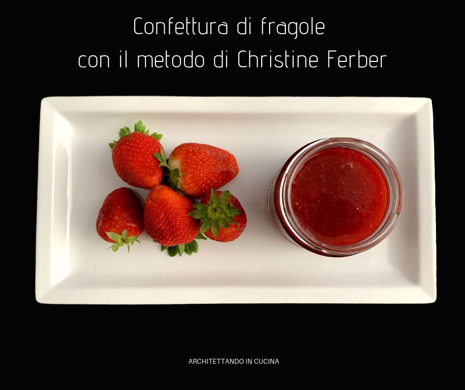 Non sono una che fa chili di marmellate, ma ogni tanto mi capita da quando ho conosciuto il metodo Ferber, perché è facile e soprattutto non c’è granché da fare, praticamente si fa da sola. La cottura è brevissima e si mantengono i colori, dando vita ad una marmellata di un fantastico rosso che rischiara anche i giorni più bui. Quindi con un kg di fragole, che avrebbero dovuto fare da copertura ad una torta, che non ho avuto il tempo di fare, ho realizzato questa bellissima confettura che mi ha dato davvero tanta soddisfazione. Del metodo Ferber, in realtà ne ho già parlato qui, qui e qui, ma nonostante abbia fatto questa confettura parecchie volte, non mi sono mai ricordata di postare la ricetta originale della Ferber con le giuste dosi di zucchero.