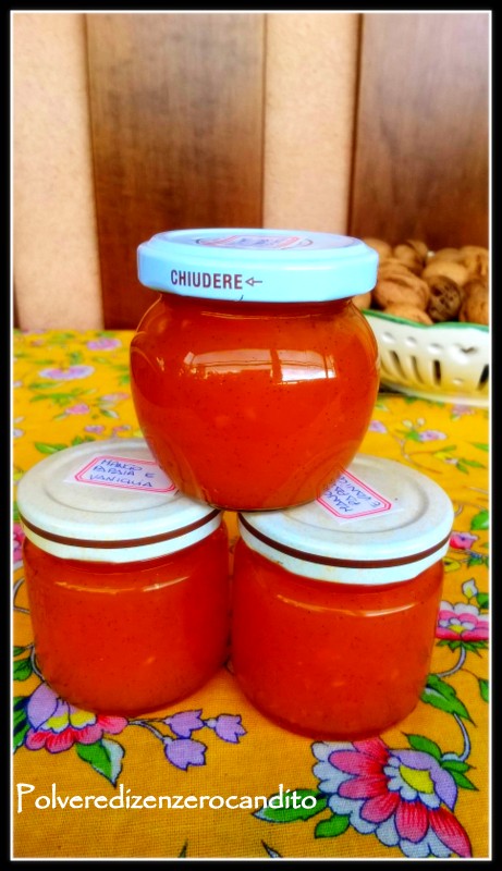Dopo qualche minuto di bollore, quando sarà leggermente più corposa e meno liquida, invasare bollente, in barattoli sterilizzati e chiudere ermeticamente.