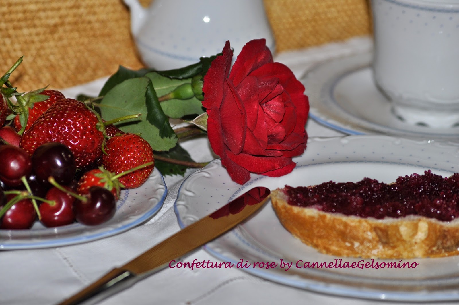 Dai primi di maggio è esplosa la fioritura delle mie rose rosse e mi è venuta voglia di catturarne i colori e i profumi in una confettura (avevo già realizzato lo sciroppo ).