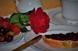 Dai primi di maggio è esplosa la fioritura delle mie rose rosse e mi è venuta voglia di catturarne i colori e i profumi in una confettura (avevo già realizzato lo sciroppo ).