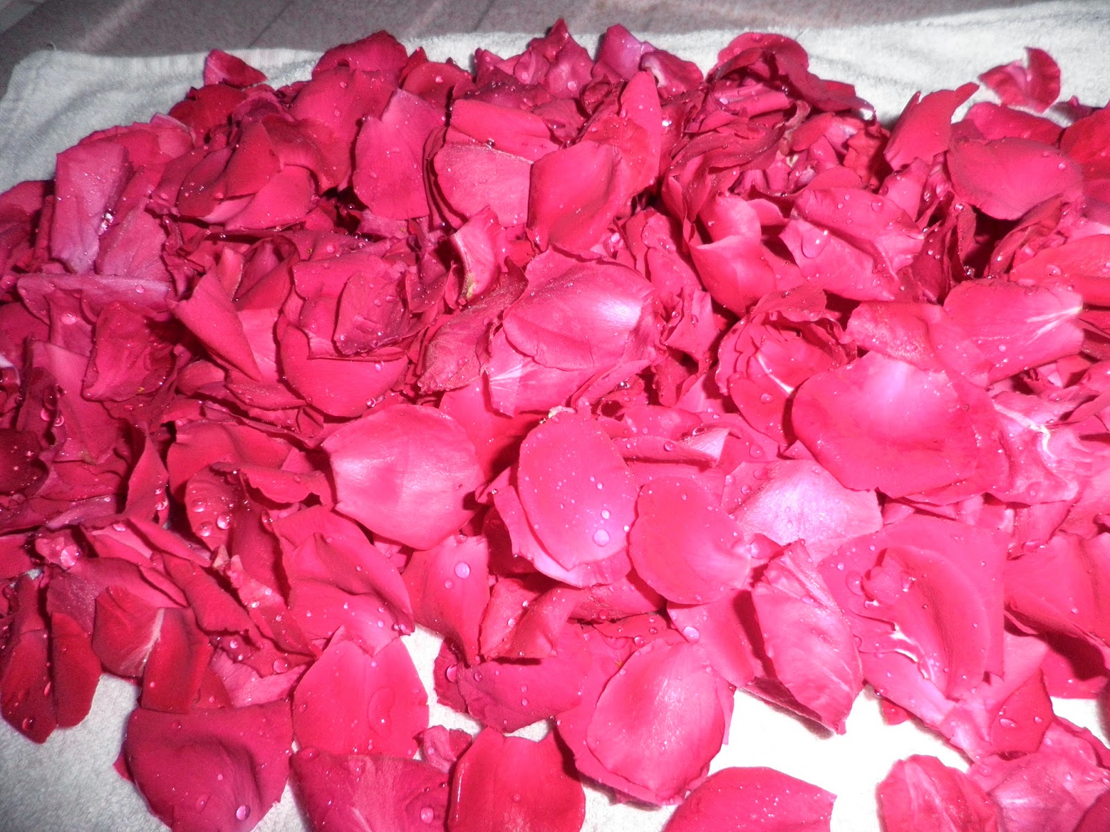 Taglio con una forbice la parte bianca dell’attaccatura del petalo, lavo velocemente in acqua fredda e metto su un canovaccio ad asciugare.