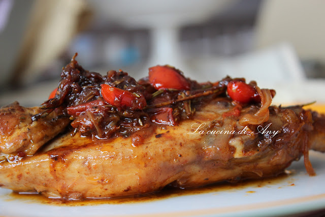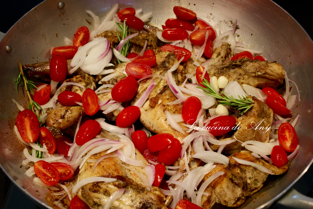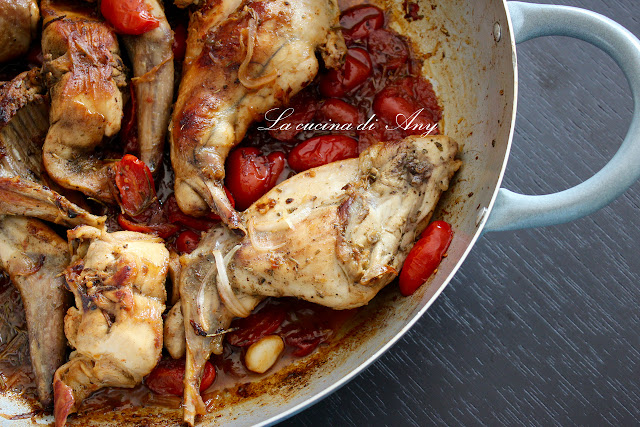 A casa mia il coniglio piace e questo non è più un segreto, se guardate il mio blog potete trovare un bel po di ricette. Ci pace moltissimo anche in questa versione con i pomodorini, la carne acquista un’ottimo sapore e il sughetto che si forma in cottura è buonissimo, credetemi.