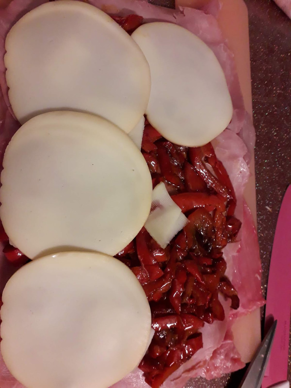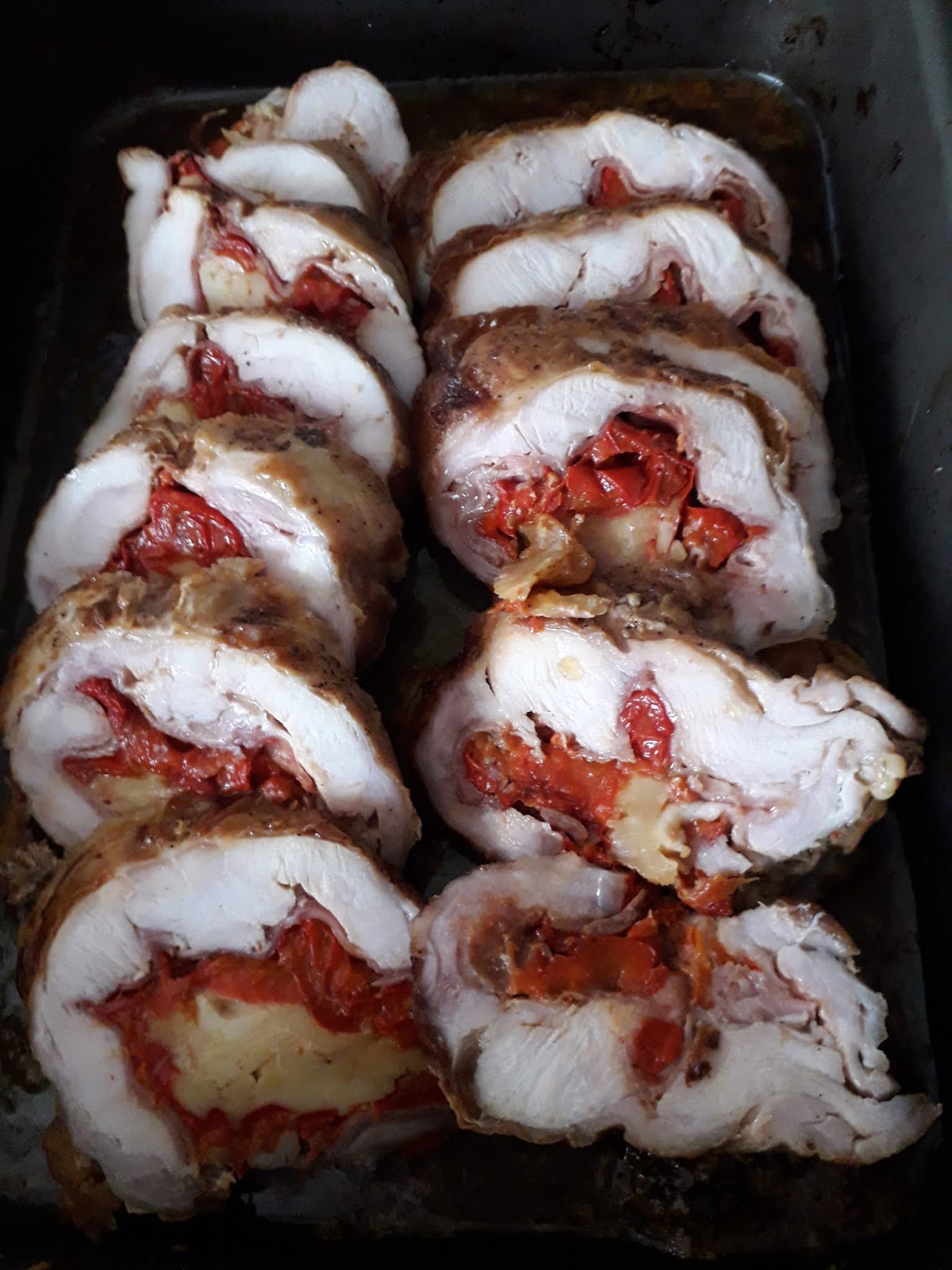 e fette di scamorza ,arrotoliamo e leghiamo ,saliamo,pepiamo e mettiamo in una teglia con olio