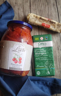 Passate 2 secondi sotto l’acqua e passate in forno a tostare. Prendete i pomodorini del piennolo che in questo caso erano già spaccati e conservati in vaso, scaldateli con un filo di olio e aggiustate di sale e zucchero a gusto personale, cuoceteli per circa 6 minuti. Per quanto riguarda il piccantino di Ballabio -che è uno dei miei formaggi preferiti – va ripulito della muffa naturale che vi si forma attorno ed è pronto per l’uso, se non lo finite vi consiglio di metterlo in un vasetto coperto di olio e pellicola per alimenti, per evitare che si formino le muffe e che si asciughi stando in frigorifero.