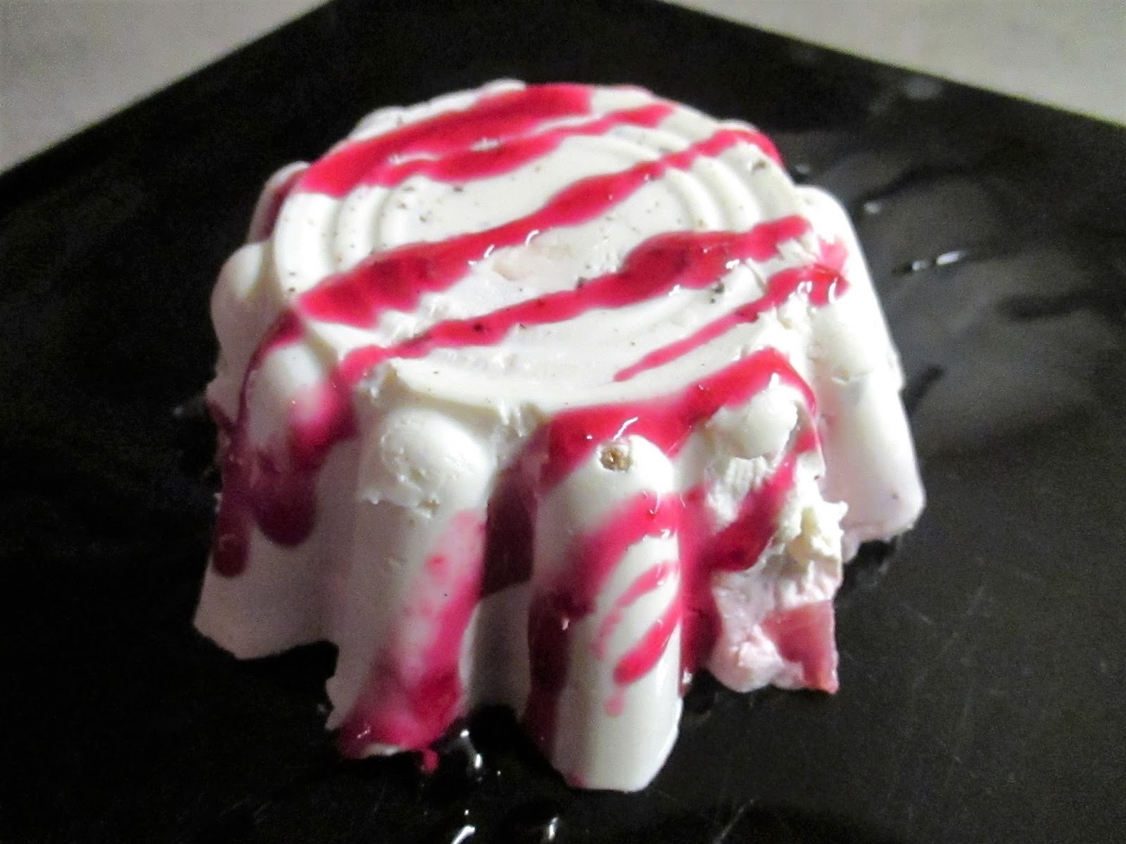 A panna cotta un peu spécial, épicé à la cannelle et la cardamome, et avec un remplissage délicieux de fraises de mon jardin bien sûr. Perceptions: onctuosité (panna cotta), la précision et la saveur (fraise), aromatique et épicée (cardamome et cannelle).