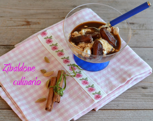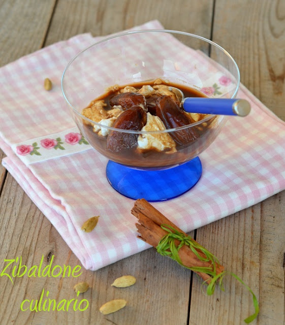 Oggi ho tratto questa ricetta da MagAbout Food (qui), quando l’avevo letta mi aveva convinto subito, ho fatto qualche variazione ma effettivamente è un dolcino piacevole e leggero, un fine pasto ideale, in pratica un affogato al caffè aromatizzato con i datteri per renderlo speciale.