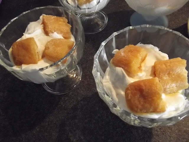 Bagnate i savoiardi nel succo di frutta all’albicocca e tagliate ogni savoiardo in tre tocchetti.