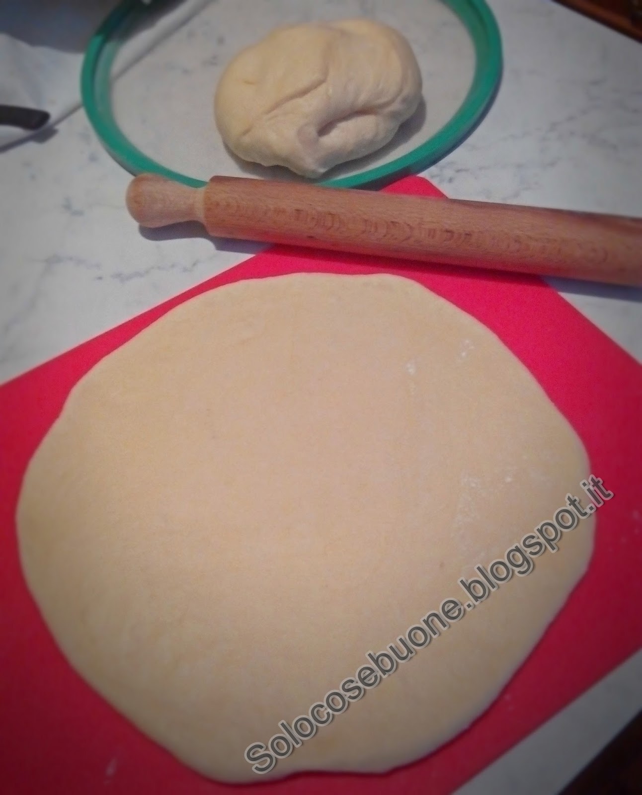 Dividiamo l’impasto in due e stendiamo i due dischi di pasta di 3/4 millimetri di spessore.