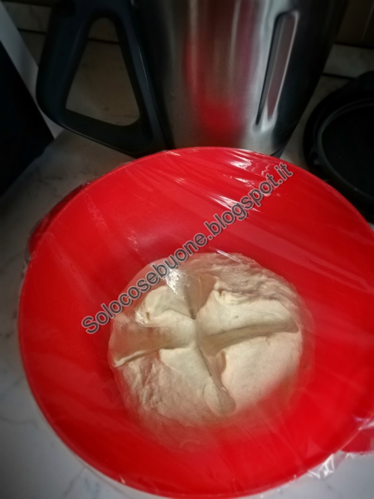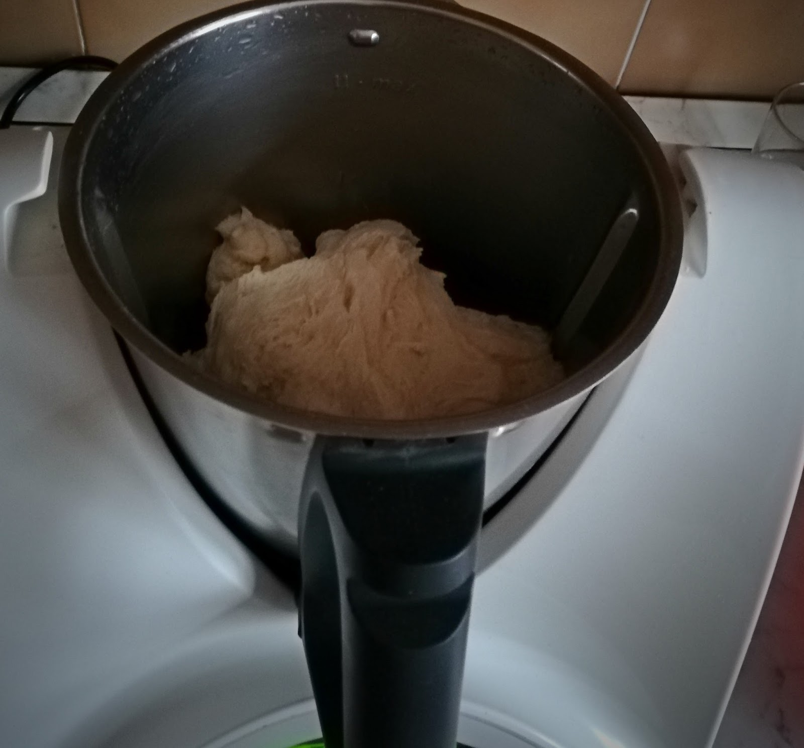 Mettere nel boccale l’acqua, il lievito e lo zucchero: 40 secondi a 37° vel.3; aggiungere le farine: 1 minuto vel. spiga; infine il burro ed il sale: 3 minuti vel.spiga.