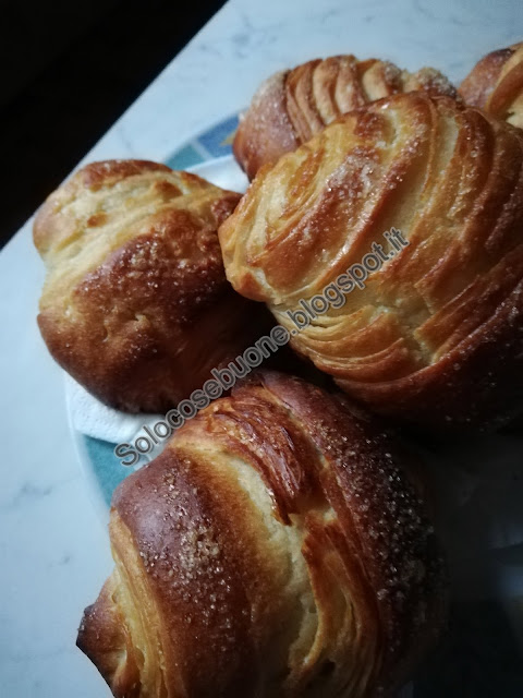 Sono friabili all’esterno e morbidi all’interno, da gustare non solo a colazione ma in ogni momento della giornata! Il procedimento è facile ma un po’ lungo. Alla fine il profumino che si diffonderà in casa e l’ottimo sapore vi ripagheranno del tempo impiegato per realizzarli.