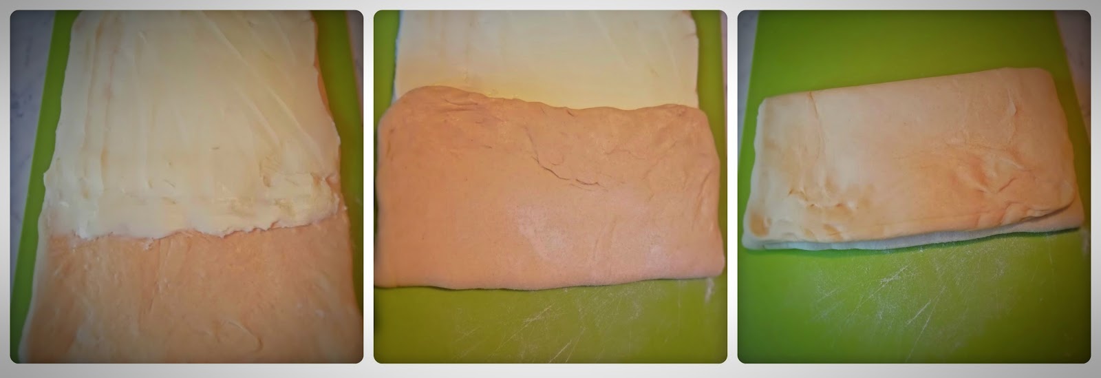 - procedere con le pieghe piegando il terzo della pasta senza burro verso il centro come da foto foto 2