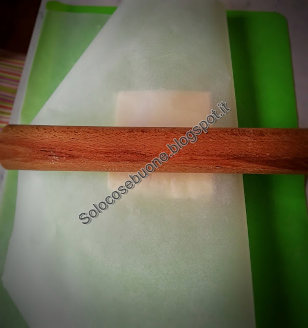 - trascorsi 20 minuti riprendere il panetto e stenderlo con il mattarello, cercando di allungarlo e senza allargarlo troppo foto 4
