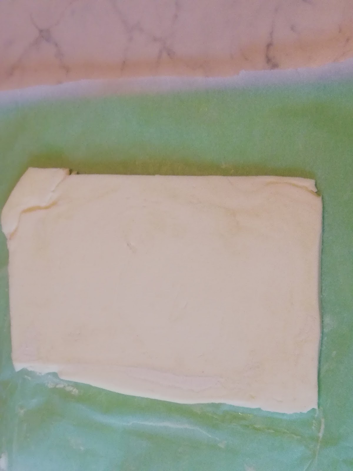 - posizionare il burro sulla pasta: il burro dovrà ricoprire circa 3/4 della pasta sottostante, come da foto 1.