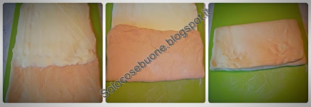 - piegare il lembo rimanente verso il centro, sovrapponendolo al resto della pasta foto 6