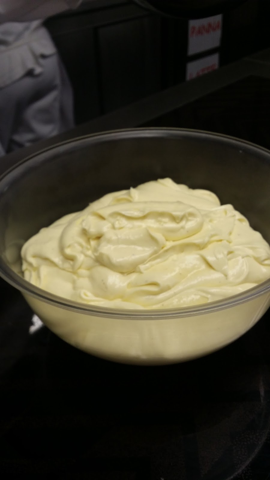 Attenzione perchè è ad alto rischio batterico in quanto va freddata a 20 gradi non a 4 come una normale crema, e va degustata a temperatura ambiente.