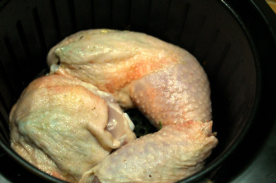 Lasciate riposare almeno 30 minuti dopo aver massaggiato le cosce attraverso il sacchetto per insaporirle con i condimenti.Inseritele nel cestello dell friggitrice ad aria e cuocete a 200° per 25 minuti. Controllate la cottura che può variare a seconda delle dimensioni delle cosce, devono risultare belle dorate e croccanti fuori e infilzate con la forchetta morbide con la carne bianca.