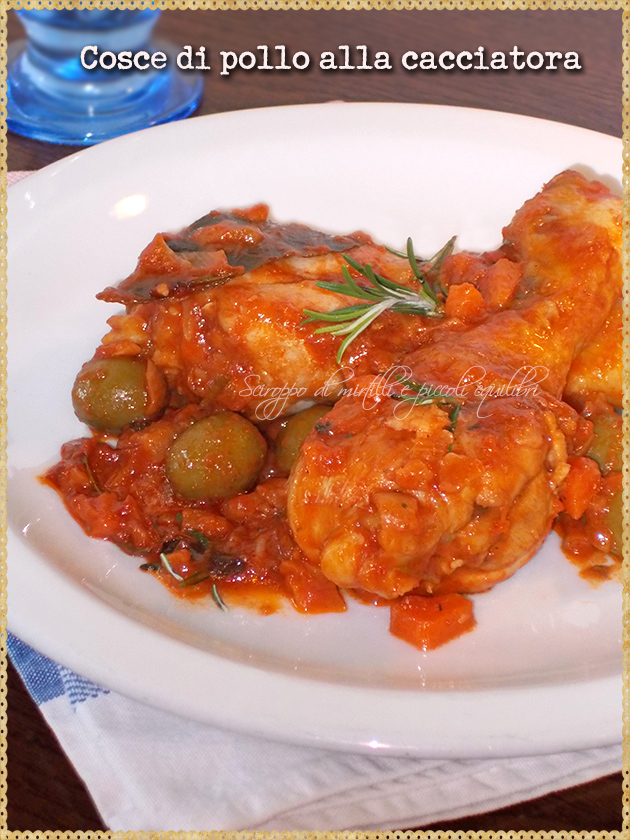 Il pollo alla cacciatora è una ricetta della tradizione contadina, sembra di origine Toscana, ma è presente in tutte le regioni d’Italia. Io ho utilizzato le cosce di pollo.