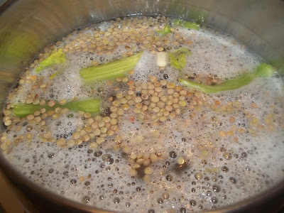 Quando saranno pronte, scolate l’acqua dell’ammollo e mettetele a cuocere in acqua pulita con un gambo di sedano.