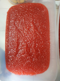 Ottenere dai melograni 200 ml di succo: io prima li ho sgranati, poi frullati e quindi filtrato.Ho messo il suco a decantare in frigo mentre preparavo le mele cotogne.