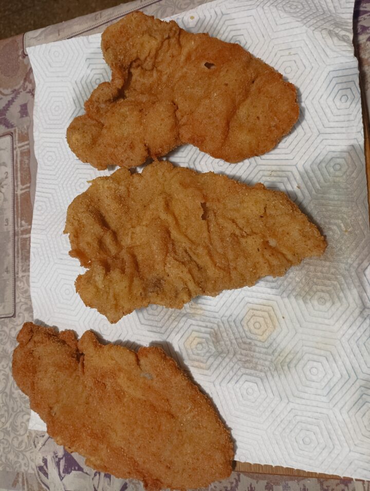 Quando è ben caldo (circa 170–180°C), friggere le cotolette 3–4 minuti per lato finché sono dorate e croccanti.