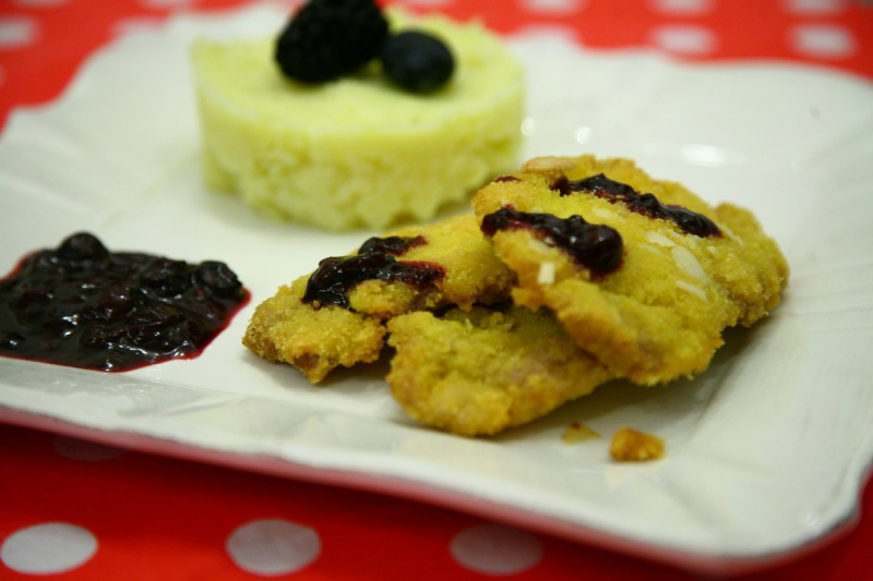 In un piatto mescolare le mandorle con la farina gialla. Passare le fettine di filetto nell’uovo, nella farina e mandorle, nuovamente nell’uovo e finire con la farina di mais e mandorle. La doppia panatura garantisce una croccantezza incredibile.