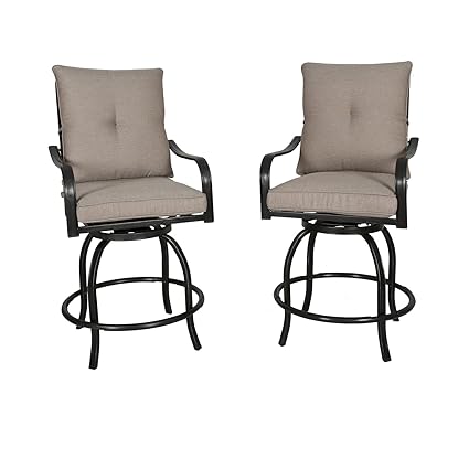 Ulax Furniture Outdoor 2 Piece Counter Height Swivel Bar Stools High Patio Dining Chair Set