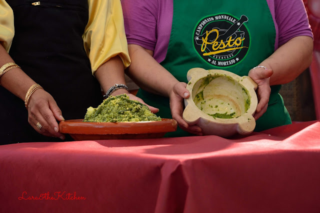 Per quanto riguarda il pesto, Alessandra ha tenuto a specificare che non vi è ricetta precisissima, ognuno lo fa seguendo il proprio gusto, specialmente nell’aggiunta dei formaggi, ma osservando certe piccole attenzioni durante la fase di “pestaggio” si può otterene un pesto davvero ottimo.