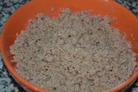 - Per il cous cous: mettere il cous cous in una ciotola con 4 cucchiai di olio e sgranare bene con una forchetta, poi coprire con l’acqua bollente salata, coprire con un piatto e attendere cinque minuti.