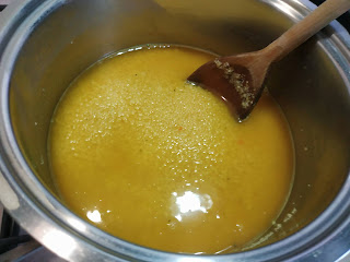 Con i carapaci e le teste dei gamberetti preparate un brodo, al quale aggiungerete le erbette che vi piacciono e un pizzico di curcuma o zafferano (mi piace moltissimo la tonalità di giallo che assume il coucous). Filtrate il brodo e tenete in caldo.