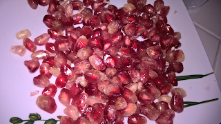 Aggiungete quindi 50 g di pistacchi in granella, 50 g di mandorle tostate spezzettate, 50 g di cioccolato fondente o modicano, 50 g di uvetta che avrete prima lavato bene, le scorzette di arancia a dadini, 50 g di gherigli di noci e per finire una melagrana sgranata.