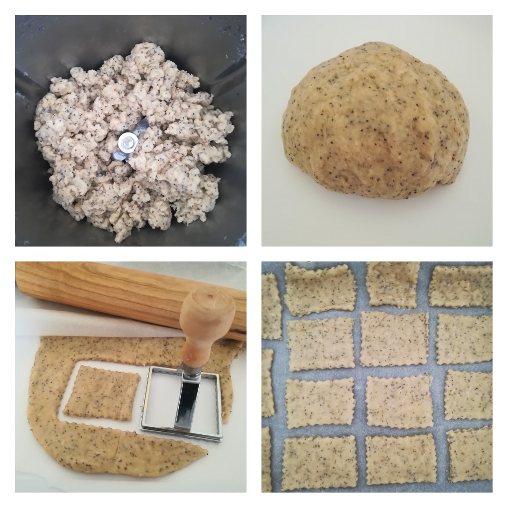 I crackers speziati che ho preparato hanno nell’impasto: semi di papavero, origano, pepe nero, un pizzico di coriandolo e ho utilizzato farina di tipo 1. Questa farina è più grezza, meno lavorata e quindi un poco più scura.