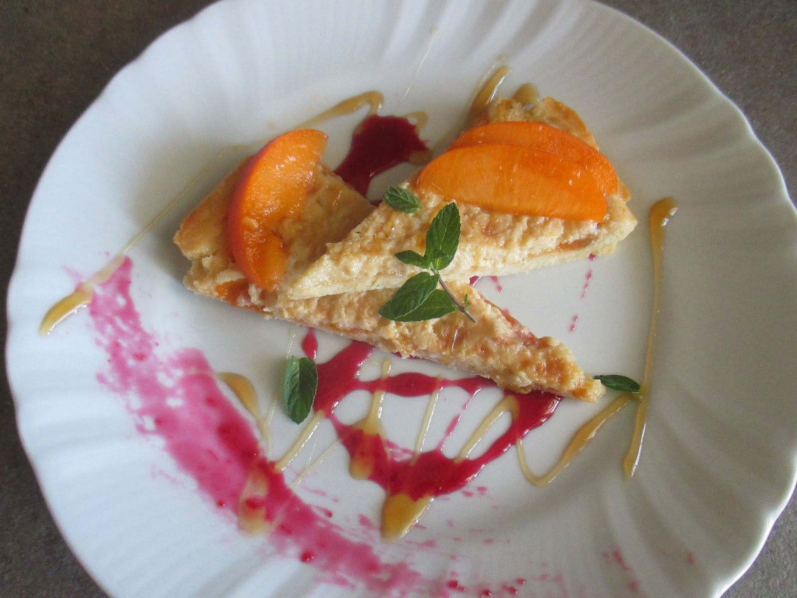 Une tarte avec un mélange de crème pâtissière allégée avec la crème fouettée et un abricot savoureuse purée catégoriquement maison. Essayez et vous vous sentirez que la bonté.