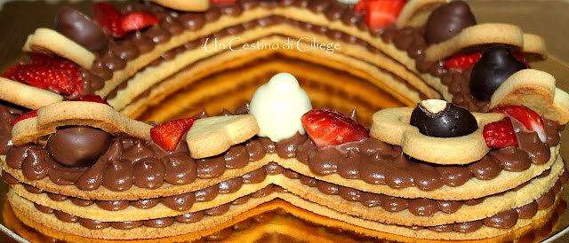 L’ho realizzata con la ricetta della mia pasta frolla e farcita con mousse alla nutella… ve la consiglio!