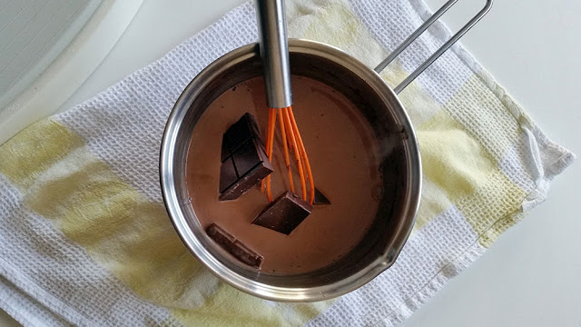 Pour the dark chocolate into the cream mixture and stir until the chocolate melts.