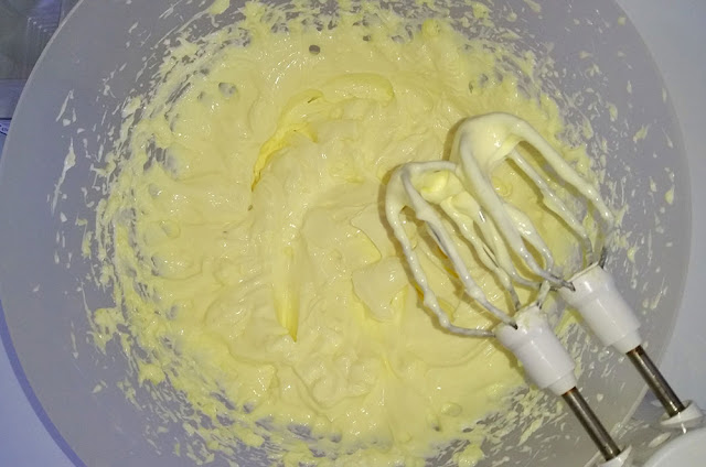 Español. Cuando la crema estè fría (que tomará por lo menos 40 minutos), ponerla en un recipiente grande y mezclarla con el mascarpone, usando un batidor eléctrico o planetaria.