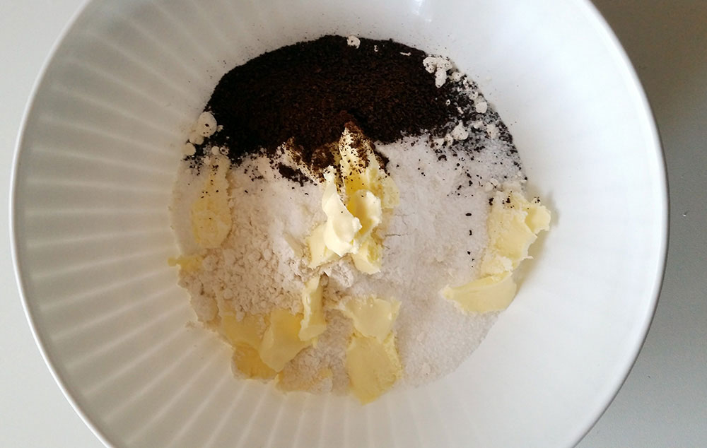 - 100 g all purpore flour, 50 g butter, 50 g caster sugar, 6 g coffee powder