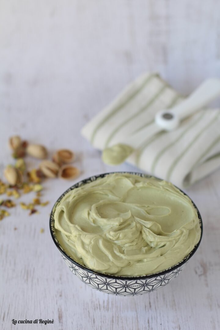 Questa crema nasce dall’unione di tre soli ingredienti, scelti con cura: mascarpone, panna vegetale per dolci leggermente zuccherata e una crema spalmabile al pistacchio di buona qualità. Proprio la semplicità degli ingredienti permette di ottenere un risultato sorprendente, dal gusto intenso e dalla texture setosa.