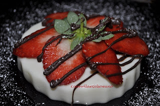 Sformate la crema e decoratela con gli ingredienti che più piacciono al vostro lui o alla vostra lei: io ho messo le fragole che sono la mia passione e il cioccolato fondente che è la passione del mio amore. Fine. Non serve nient’altro, perchè l’amore è semplice!