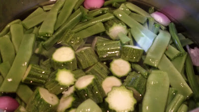 e i fagiolini privandoli delle estremità e tagliateli a pezzi.