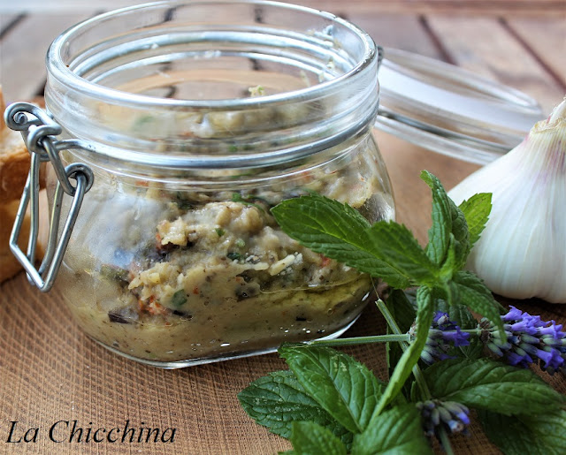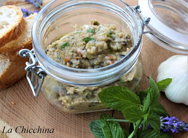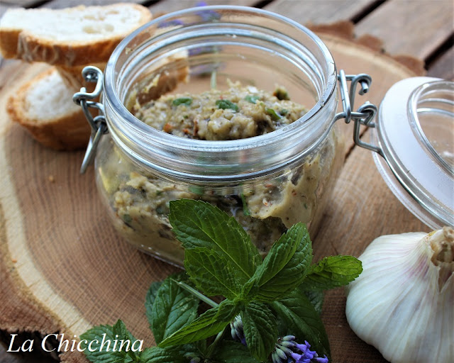 La crema di melanzane è una preparazione tipica delle zone del mediterraneo, dove, a secondo della zona, viene chiamata con nomi diversi; io l’ho fatta a modo mio e, devo dire il risultato mi ha davvero soddisfatta: la melanzana l’ho cotta lentamente in padella senza eliminare la buccia…Ho poi aggiunto pomodori secchi, menta, prezzemolo, uno spicchio d’aglio dell’orto di mia suocera e un goccio d’olio buono…una frullata e il gioco è fatto.