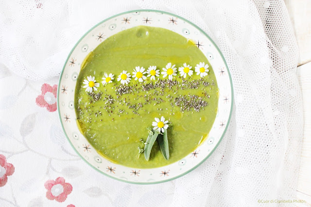Questa stagione per me è bellissima! L’aria fresca di prima mattina, il sole che scalda la pelle. Tutto sembra prendere di nuovo vita… i fiori sbocciano, i frutti crescono sugli alberi e l’orticello di casa mia è in piena produzione… non vedevo l’ora! Niente è più bello che scegliere cosa preparare per pranzo in base al raccolto del mattino! E così di pisellini freschi e zucchini appena raccolti ne ho fatto una leggerissima crema, ottima servita tiepida accompagnata da una spolverata di semi di chia e crostini di pane integrale!