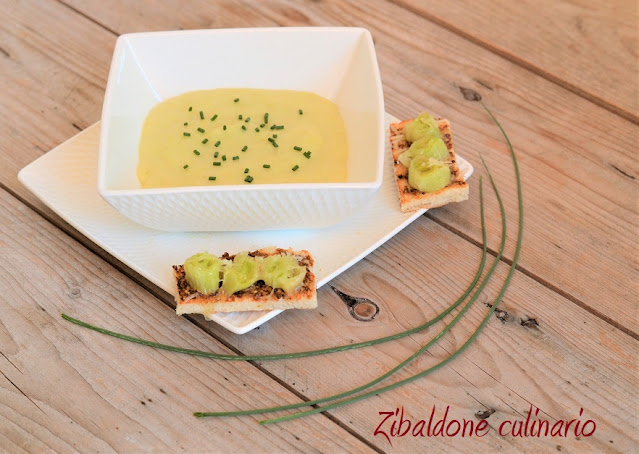 Servire la crema tiepida con i crostini ben caldi e dopo aver decorato con erba cipollina.