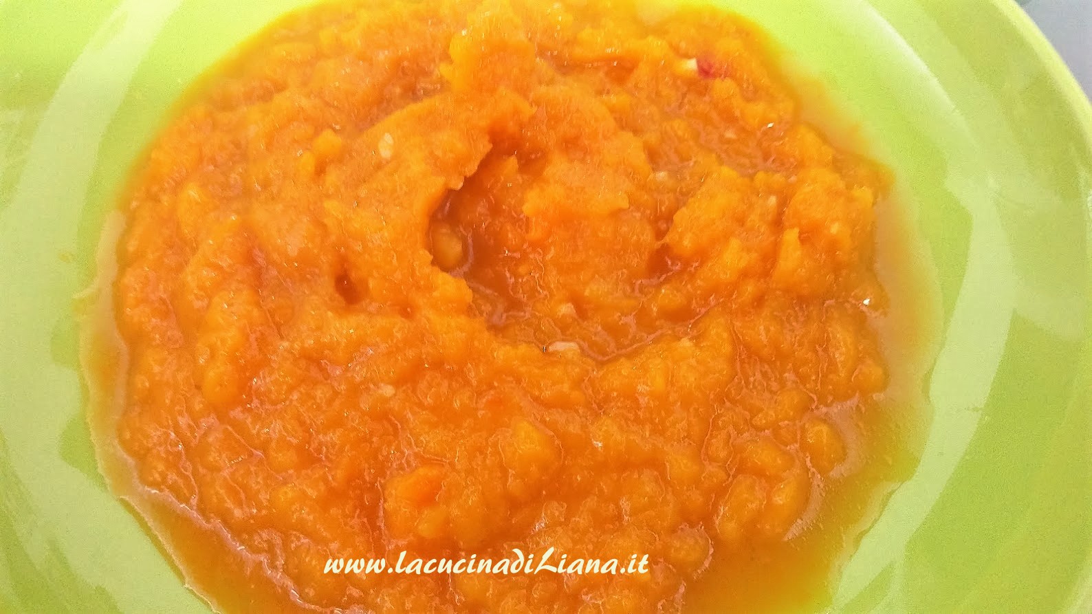 Rosolare l’aglio e il peperoncino tritati in poco olio, quindi aggiungere a rosolare i dadini di zucca, bagnare con il brodo, chiudere la pentola, impostare la potenza a 1, e il timer per 6 minuti.