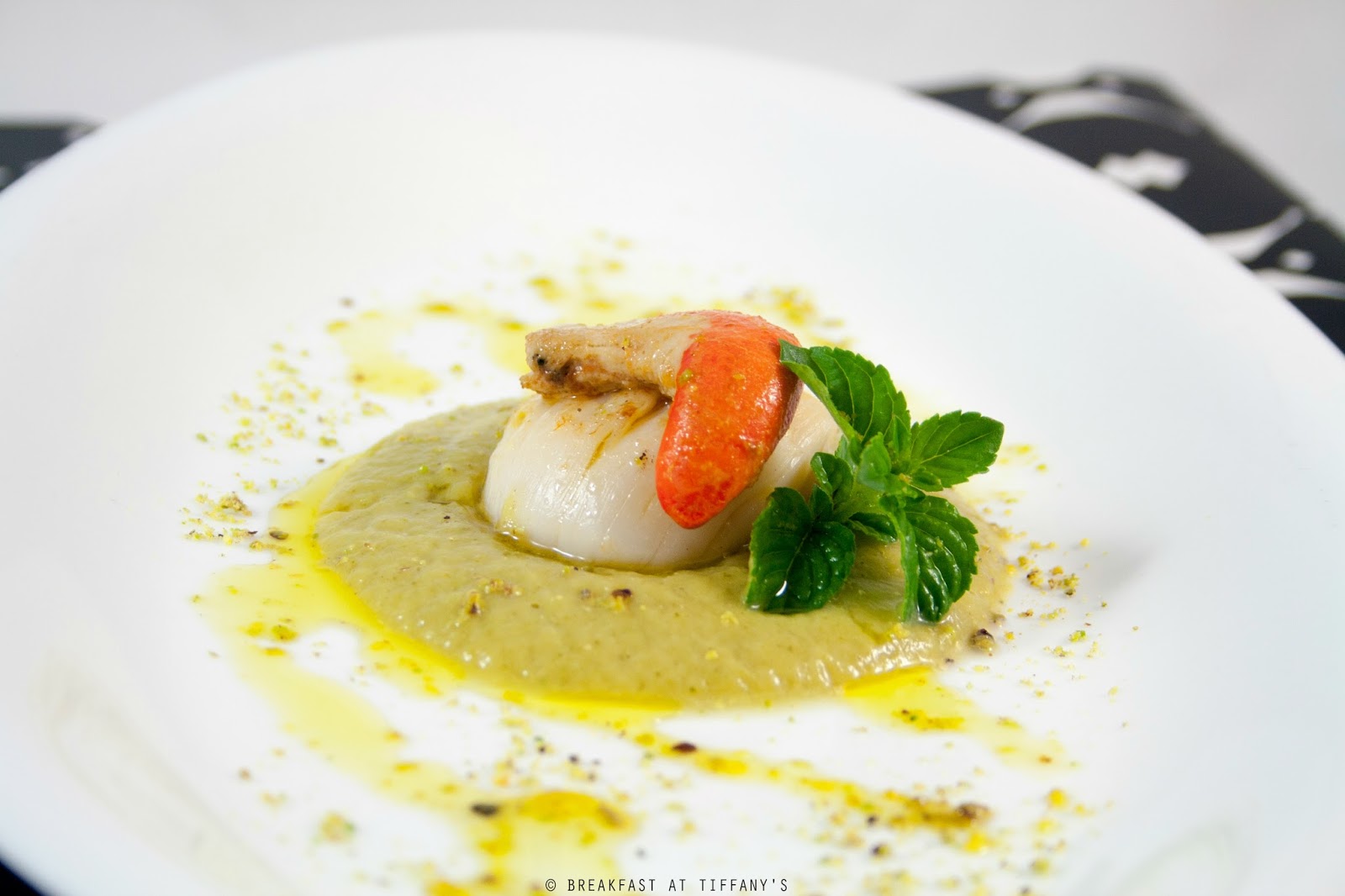Impiattare partendo dalla crema di zucchine e aggiungendo 2 capesante scottate per porzione.