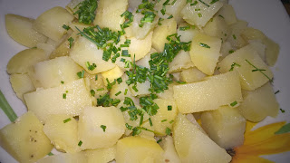 Ingredienti: 4 peperoni rossi, 200 g di pomodorini, olio extravergine d’oliva, sale, mollica di pane, aceto, erbette aromatiche, patate lesse, crostini di pane. Tagliare in falde i peperoni e sbollentarli per due minuti in acqua salata bollente.